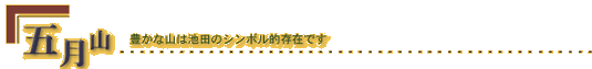 五月山は古くは佐伯山と呼ばれ、古くから人々に親しまれていました。池田市の北に聳える標高300メートルのこの山は、今も池田市民に親しまれるシンボル的存在です。
